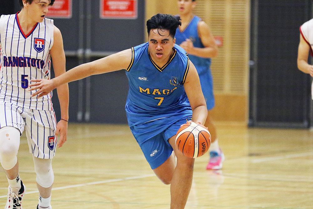 A home game for MAGS with a large and enthusiastic crowd urging the Basketball Boys Premiers on in a close and tense game, with Rangitoto College eventually prevailing 73-66.