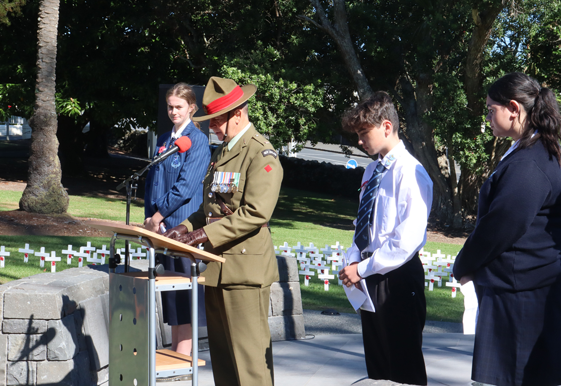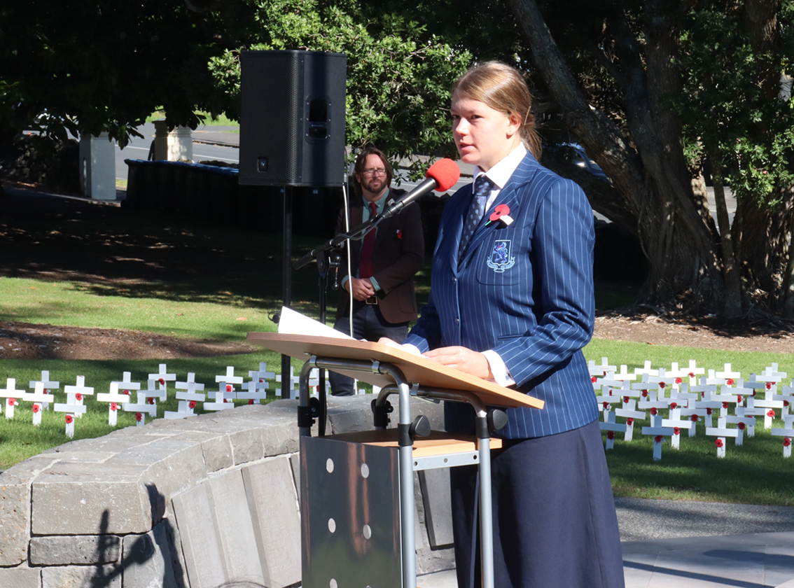 Year 13 History student Emma Cook spoke poignantly about what Anzac Day meant to her, with past and present family serving their country across the last century.