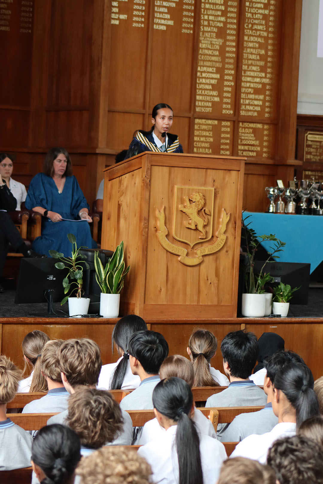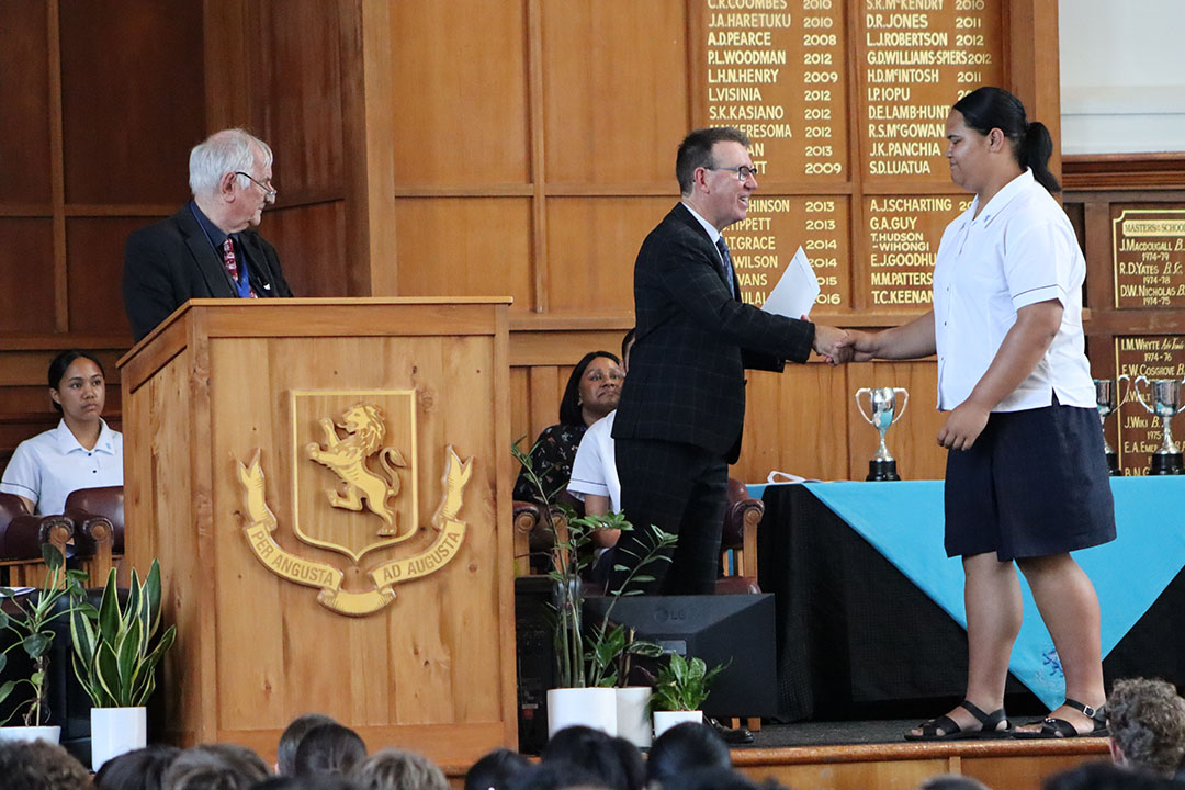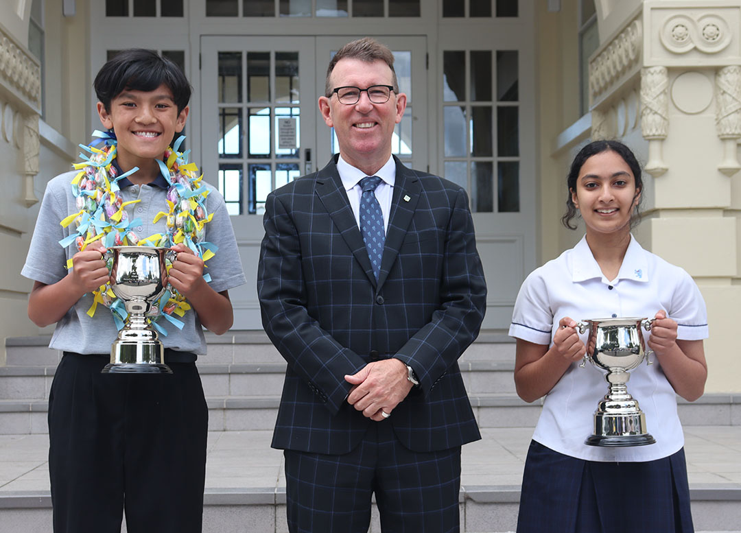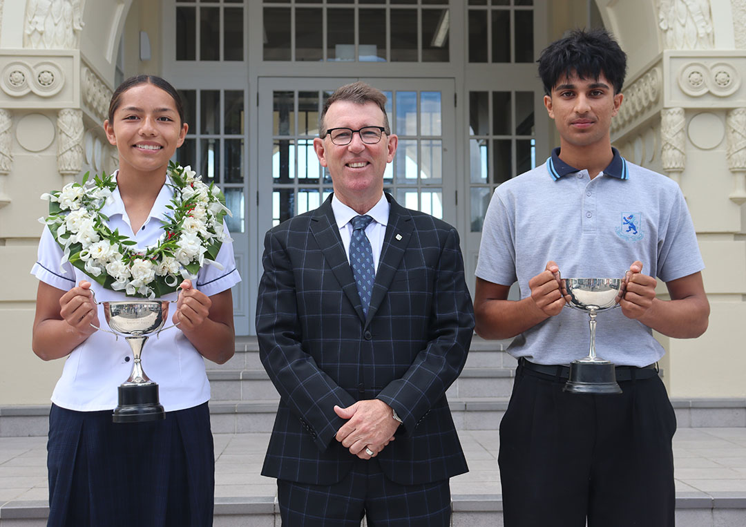The Paul Gardener Service Cup was awarded to Prisha Aravind and Isaiah Boutsady, while Neville Watson Awards for the Students Who Best Typify the Spirit of Mount Albert Grammar School were presented by Jan Watson to Solomon Tomokino (Year 10) and Olive Nelson Welch (Year 9).