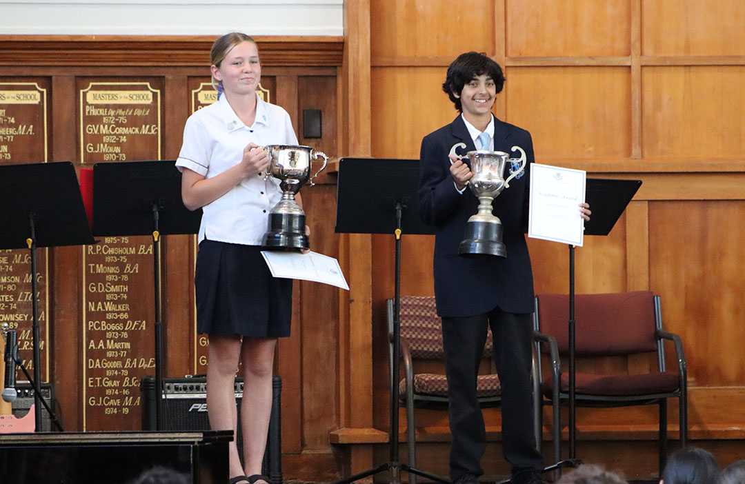 The Greg Cave and Elise Goddard Cup winners for Year 9 Academic Achievement are Ash Jansen and Amara Shah, while the Best All-Round Year 9s are Aidan Ranchhod and Tulsi Bayliss (pictured above).