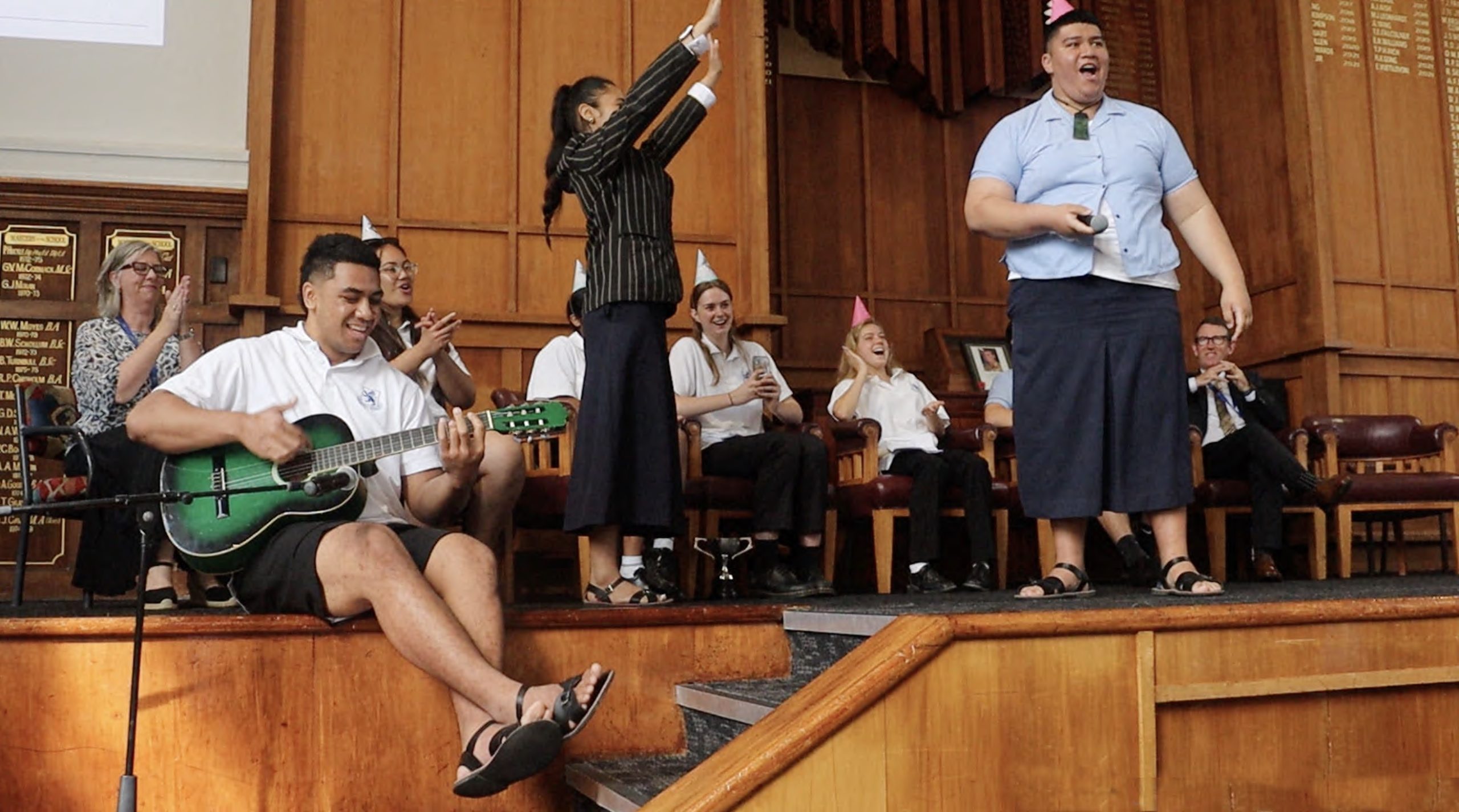 The Leavers Video was a highlight of the assembly as students looked back on their MAGS journey. Isaiah Nin, Sarah-lee Talataina and Nathan Setefano performed Now or Never to a rapturous reception.